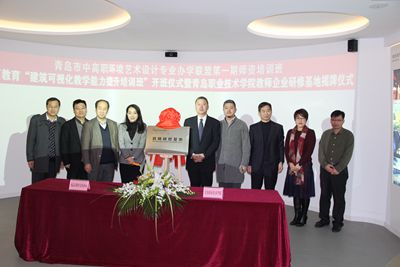 此次培训班是由我院艺术学院与水晶石数字科技有限公司青岛培训中心合作举办的青岛市中高职环境艺术设计专业办学联盟第一期培训班,参训教师来自青岛市各中高职院校,旨在推进环境艺术设计专业中高职联盟专业建设,提升师资专业水平。活动中同时举行了我院教师企业研修基地揭牌仪式。
