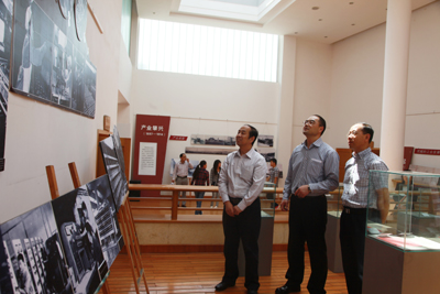 《青岛制造之路》大型展览在报告厅展出,院长覃川、纪委书记刘伟陪同