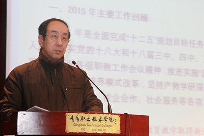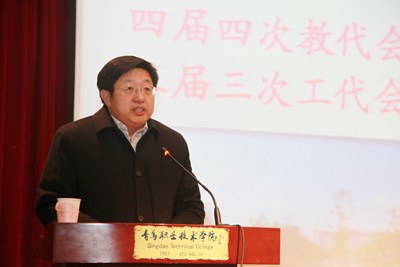 在会议闭幕式上,党委书记王金生发表讲话。他指出,本次大会是在全院上下扎实开展“三严三实”专题教育,总结“十二五”、展望“十三五”重要时期召开的一次会议,他代表学院党委对大会的成功召开表示热烈祝贺,对全院教职员工的辛勤付出表示衷心的感谢。他从认清形势,统一思想;落实章程、依法办学;以人为本、民主管理;改进作风,驰而不息4个方面阐述了2016年的主要工作方向和要求。他强调,学院正处于发展提速、蓄势崛起的黄金时期,也处于攻关转型、办出特色的关键时期,按照习近平总书记“改革要从具体问题抓起,紧之又紧,细之又细,实之又实”的要求,只要每一个人多一份改革的勇气、历史的担当、爱校的情怀,同心同德、齐心协力,勤勉工作、拼搏进取,就一定会实现学院新时期的奋斗目标,谱写学院新时期的辉煌篇章。最后,在新年到来之际,王金生代表学院党委向全院教职工、离退休老同志以及家属致以真诚的问候,祝福大家工作顺利、阖家幸福、身体健康、万事顺意。