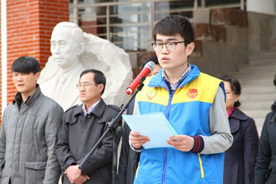 学生会主席辛洪泽同学宣读《“传承雷锋精神 共筑志愿梦想”倡议书》