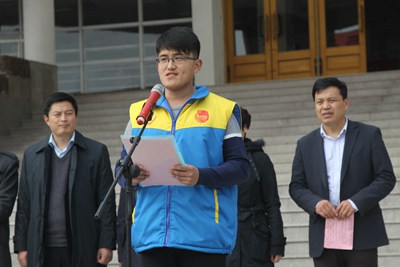 仪式上,学生会主席辛洪泽同学宣读《“传承雷锋精神 共筑志愿梦想”倡议书》并带领全体志愿者进行宣誓。“小马支教”贵州项目即将赴任的第三批志愿者代表焦泽华同学发言,他希望全体志愿者能传承雷锋精神,践行志愿者精神,将奉献他人与提升自我相统一,以争当志愿者为荣,以参与志愿活动为荣。