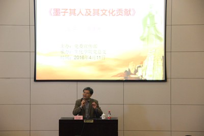 讲座中,单承彬教授详细介绍了墨子的生平、“尚贤、尚同、兼爱、非攻、节用、节葬、天志、明鬼、非乐、非命”的十大主张及他在力学、光学、心理学、数学、逻辑学方面的突出贡献。他旁征博引,深入浅出,幽默诙谐的讲述赢得了师生一次次的掌声,使同学们从不同的角度深刻感受到墨家文化的魅力,增进了对墨家文化的了解。