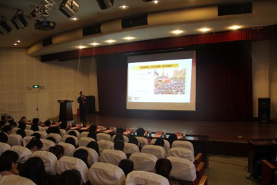 4月12日至17日,由常州恐龙园股份有限公司主办,我院旅游学院与青职国际旅行社有限公司联合承办的“恐龙来了——常州恐龙园股份有限公司企业科普文化周”活动在我院举行,包括企业科普周启动仪式、恐龙化石展览、恐龙科普讲座、互动嘉年华、3D墙面秀、龙出没、恐龙宝贝巡演、魔术特技闪秀、小学生校园科普游、企业宣讲会等11项活动。 科普文化周期间,黄岛区香江路第三小学、开发区实验小学、珠江路小学、嘉陵江路小学、黄浦江路小学等5所小学的1000余名师生、家长代表来到我院参加活动。他们参加了 “恐龙科普讲座”;参观了由我院旅游管理专业2015级学生担任导游的恐龙化石展览、我院的民间技术馆及校园内的大型工业展藏品;观看了恐龙知识的科普展板和3D墙面秀;参加了互动嘉年华的体验项目,观看了恐龙宝贝秀、魔术特技闪秀等活动。后续常州恐龙园股份有限公司将深入到黄岛区各小学作恐龙科普知识讲座,实现科普知识进校园的目标。在活动期间,我院各二级学院的学生、学校附近的部分居民及儿童参观了恐龙化石,参与了嘉年华体验项目。 科普文化周期间,常州恐龙园股份有限公司在我院召开宣讲会,旅游学院2014级学生参加,通过宣讲,同学们了解了该公司的基本情况,尤其对该企业对员工的培养十分认同,表示愿意到常州恐龙园股份有限公司顶岗实习或就业。