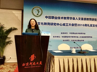 4月16日至17日,中国职业技术教育学会人文素质教育研究会礼仪文化教育研究中心成立大会暨2016年礼仪文化教育学术研讨会在北京举行,来自全国各职业院校的教师100余人参加。我院副院长邢广陆作为人文素质教育研究会副会长兼秘书长参加会议并在会上讲话。