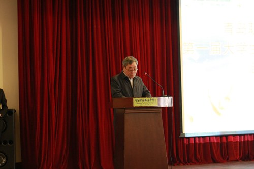 第二阶段由薛红燕主持,邀请了青岛智合商业管理咨询有限公司董事长、中国创客力量贝客汇创始人王建江董事长为与会者做讲座。他讲座的题目是“放飞梦想,用精彩谱写时代青春”,讲座内容从策略到方法,从理论到实战,深入浅出地讲解了什么是“创新、创意、创业”,鼓励同学们在自己最美好的青春时代勇于创新,大胆尝试,放飞自己的梦想。