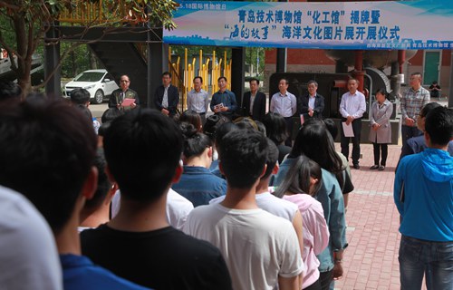 5月18日,在第40个国际博物馆日来临之际,青岛技术博物馆“化工馆”揭牌暨“海的故事”海洋文化图片展开展仪式在我院化工馆前举行。西海岸新区工委(区委)宣传部副部长、区文广新局党委书记马志广、西海岸新区文物管理办公室主任管洪强、西海岸新区博物馆馆长翁建红,学院院长覃川、副院长薛玉平、孔宪思出席活动仪式。
