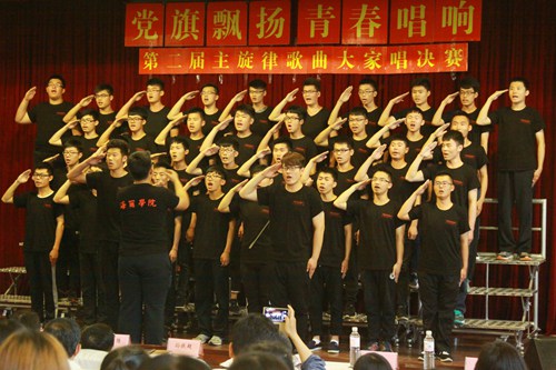 经过初赛、复赛环节以后,七个二级学院各有两个专业班级共14支代表队进入决赛。决赛中,代表队分别登台演唱了《精忠报国》、《强军战歌》、《爱我中华》、《在太行山上》、《龙的传人》、《祖国不会忘记》、《歌唱祖国》、《打靶归来》、《游击队之歌》、《团结就是力量》等经典主旋律歌曲,用青春的激情和热血唱响了对党的忠诚、对祖国的热爱。最终,教育学院学前教育专业2015级2班和海尔学院制冷专业2015级1班获得一等奖。