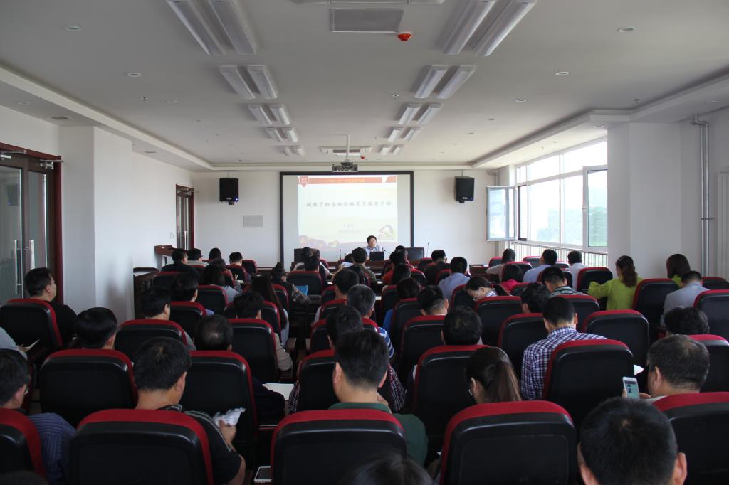 6月2日下午,党委书记王金生在综合实训楼1002会议室为机关党总支全体党员讲“两学一做”学习教育专题党课。