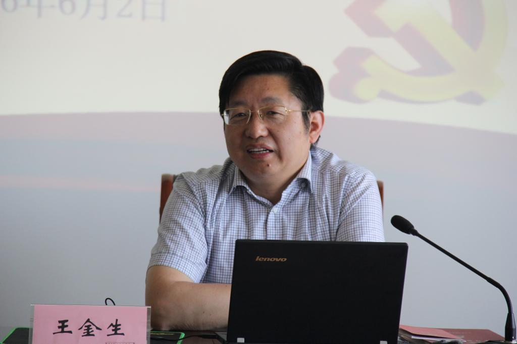 王金生做了题为《做敢于担当的合格党员领导干部》的专题党课。他从三个方面进行了阐述:一是要全面把握习近平总书记关于担当重要论述的丰富内涵;二是要深刻认识党员领导干部敢于担当的重要意义;三是要正视问题,做敢于担当的表率。王金生结合“两学一做”学习教育的实际出发,要求全体党员领导干部要勇于做“四讲四有”的合格党员,要体现习近平总书记强调的新时期好干部的标准“信念坚定、为民服务、勤政务实、敢于担当、清正廉洁”的要求。