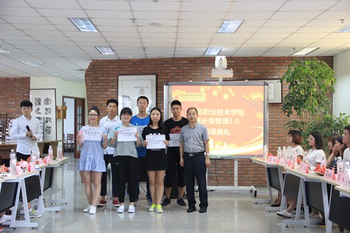 会上,学员们通过电子相册共同回忆了在第三期院长荣誉课的成长历程,来自七个二级学院的学员们分享了自己的收获和体会,纷纷表达了对主讲人覃川,对学院开设院长荣誉课的感谢。老师们为同学们颁发了课堂活跃奖、最佳团队奖等六个奖项。覃川赠送给每个同学带有签名和祝福的书籍,并亲切地和每位同学合影拥抱。仪式在师生齐声合唱改编歌曲《荣誉课的日子》的歌声中落下帷幕。