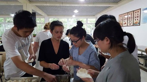 会后,师生们一起动手学习厨艺——包包子,覃川指导学员们学习包包子的技巧,美国游学生代表来自也积极参与进来,大家分工明确,兴奋不已,在欢声笑语中为期十六周的院长荣誉课学习圆满结束。