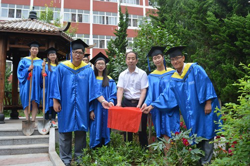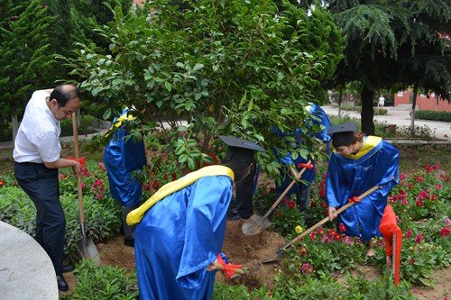 2016届毕业生即将走出校门、踏入社会,为把根留在母校,以报母校春晖,毕业生们集体向母校捐赠耐冬树。植树现场,覃川、薛玉平与毕业生代表共同将“创·青春之树”种植起来,并为其揭牌,整个现场温暖感人,情意浓浓。最后,参与活动的领导和毕业生代表在“创·青春之树”前合影留念。