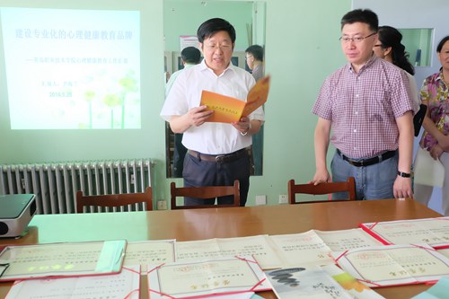 调研过程中,王金生参观了心理健康教育与发展中心的场地建设,认真听取了工作汇报,详细了解了我院心理健康教育工作的开展情况。他从两个方面对学院的心理健康教育工作表示肯定:一是工作起步早,扎实有效,在同类院校中具有较强的影响力;二是机构设置、人员配备到位,工作理念科学,有力地配合了学院整体工作的开展。对心理健康教育与发展中心存在的实际困难,王金生要求相关部门尽快解决落实,并对进一步促进心理健康教育工作的开展提出了三点意见:第一,心理健康教育工作是学院德育工作的重要组成部分,要高度重视学生的心理健康教育工作,心理健康教育工作体系要建设好,条件要保障好,作用要发挥好;第二,心理健康教育工作是一项全员性工作,各二级学院和相关部门要给予积极配合;第三,心理健康教育工作任务重,专业性强,心理健康教育的教师必须注重自身心理的维护与保养。