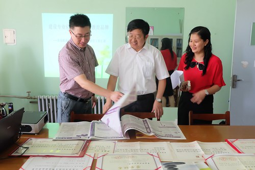 教育学院院长郑洪利向王金生介绍《心灵导航报》刊发情况