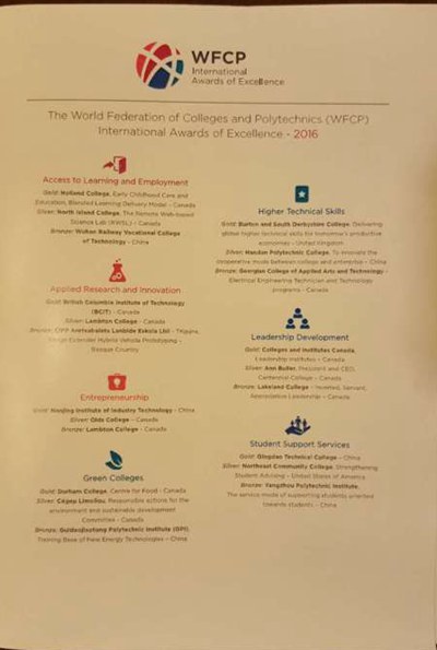 世界职教院校联盟(WFCP)是一个拥有来自全球55个国家和地区高等职业院校、应用技术大学、职教机构会员自发联合起来的组织。2016年世界职教院校联盟大会共有20多个国家的70多个机构,1200多人注册参会。此次联盟大会依托2014年发布的7个活动主题,在世界范围内评选了7个卓越金奖、7个银奖和7个铜奖院校。此次奖项的评选由WFCP董事会负责组织。我院获此荣誉,不仅是WFCP对学院学生支持服务工作的认可,更是对中国高职院校学生支持服务质量及我院牵头“学生支持服务”项目所做出努力的充分肯定。
