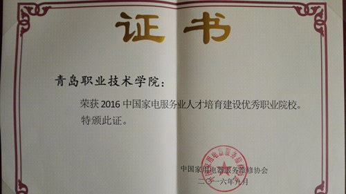 近日,在武汉职业技术学院举行的2016年中国家电服务业人才培育建设研讨会上,我院获得“中国家电服务业人才培育建设优秀职业院校”荣誉称号,同时还获得了中国家用电器服务维修协会定点培训学校资质。
