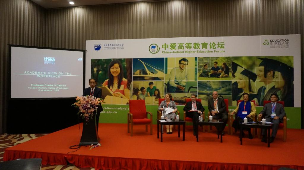 在中国-爱尔兰高等教育论坛-培养应用型人才的经验分享和对比分论坛上,来自爱尔兰阿斯隆理工学院、爱尔兰卡洛理工学院、爱尔兰高威梅奥理工学院、华东理工大学、唐山工业职业技术学院的代表分别进行了演讲,并和与会者交流了合作经验。覃川全程主持了论坛,对各位代表的发言进行了点评,并对我院的中爱合作情况作了介绍。