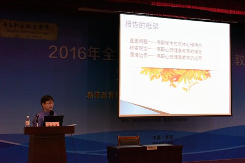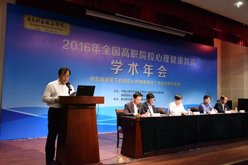 10月20日至22日,由中国心理卫生协会大学生心理咨询专业委员会高职院校心理健康教育工作委员会主办,我院承办的“2016年全国高职院校心理健康教育学术年会”在我院艺术厅召开。中国心理卫生协会大学生心理咨询专业委员会副主任马建青教授,北京师范大学心理学院教授、中国心理卫生协会大学生心理咨询专业委员会副主任伍新春,南京信息职业技术学院党委书记张旭翔、青岛市高校工委副书记李岷、我院院长覃川出席大会,来自全国19个省、自治区和直辖市的207名代表参加了会议。