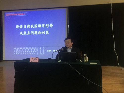 干焱平教授作题为“浅谈目前我国海洋形势及焦点问题和对策”的讲座。他从目前我国面临的海洋形势,谈到了如何利用和开发周边海洋资源,以及海洋资源和形势对我国的整体发展的影响,并有针对性地提出了做好海洋相关工作的方法和措施。聆听讲座的师生表示,干焱平教授对目前维护我国海洋权益的重要性、紧迫性的分析,让自己有了更加清醒和深刻的认识,进一步增强了民族自豪感以及为实现“中国梦”贡献力量的使命感、责任感。
