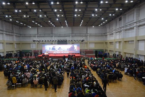 数九寒天人心暖,一家欢聚情意浓。辞旧的钟声即将敲响,迎新的礼花正在绽放。12月29日晚,学院在体育馆举行“2017年迎新文艺晚会”。院长覃川、党委副书记刘甲珉、副院长薛玉平、纪委书记刘伟、副院长邢广陆出席晚会,合作单位嘉宾、学院中层干部、外籍教师、留学生代表以及118名教职工代表、2150名新生代表参加晚会。