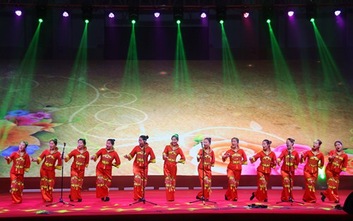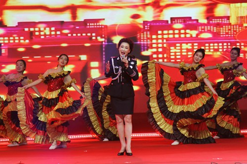 女生表演唱《八月桂花遍地开》