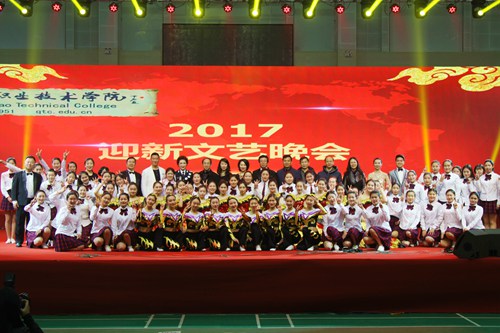 晚会伊始,对学院一年来取得的党建、综合改革、教师队伍、技能大赛等工作成果进行了回顾与总结。晚会在由王军老师指挥、刘艳霖老师钢琴伴奏、院大学生合唱团优美的歌声中正式拉开帷幕。合唱团演唱的《大海啊故乡》《感恩的心》两首歌曲表达了青职学子对学院的拳拳之心和感恩之情。女声独唱《爱你的宿命》《最美的是你》、男生独唱《不会改变》、健美操表演和舞蹈《Mannequin》《Shake it》、女生表演唱《茉莉花》《八月桂花遍地开》 都彰显了青职学子昂扬向上的精神面貌和阳光自信的青春风采。由学生带来的葫芦丝、古筝、萨克斯器乐串烧不仅弘扬了高雅艺术,而且展示了大学生的综合素质。由教育学院4位教师表演的钢琴八手联弹《加洛普进行曲》为师生们带来了钢琴演奏的花样技巧,舞台一时间变成了钢琴演奏音乐会。由于洲老师带来的男生独唱《说句心里话》表达了全院教职工愿与学院风雨同舟、共绘蓝图的信心与执着。悠扬的歌声告别着2016年的过往,热烈的舞步迎接着2017年的希望,学生的表演汇报着他们在青职学习的成果,教师的展示抒发着他们敬业爱生的情怀。演出现场高潮迭起精彩不断,师生同庆其乐融融。