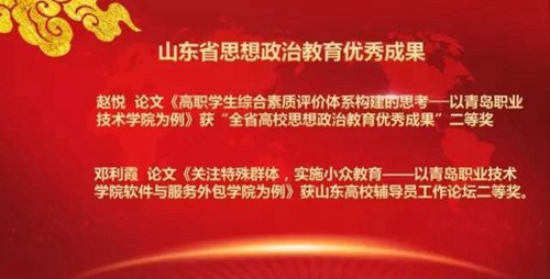 朱思伟(左)、纪杰(右)老师荣获“山东省高职院校辅导员职业能力大赛”一等奖。