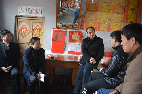 1月18日,院长覃川先后来到商学院优秀学生代表詹婷婷和贫困学生代表刘顺两位同学家中走访慰问,商学院、学生处相关负责人以及辅导员老师陪同走访。
