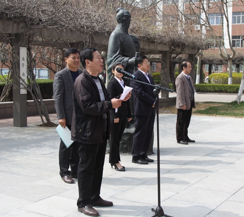 4月6日下午,学院在墨子文化广场举行墨子文化广场落成仪式,党委书记王金生,院长覃川,中国墨子学会副会长、青岛大学文学院教授、中文系主任王凯出席仪式,办公室、宣传部、组织部、思政部、学工部负责人及各二级学院党总支书记、副书记,团总支书记,学生代表共150余人参加了仪式,仪式由党委副书记刘甲珉主持。