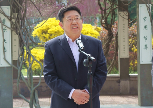 王金生在讲话中指出,墨子文化广场的落成是学院文化建设史上的一件大事,是学院贯彻落实中共中央国务院《关于实施中华优秀传统文化传承发展工程的意见》的一项重要举措,正逢其时。他表示,墨子除了是思想家、哲学家,还是科学家、教育家,被誉为“科圣”,现在国家的一些有识之士,特别是从事职业教育的有识之士,把墨子追认为职业教育的鼻祖,因为墨子的知行合一,重视学用并重,重视理论和实践相结合的教育思想与现代职业教育高度吻合,而且墨子本身也是一位工匠大家。墨子像、墨子文化广场的落成,对于学院来说,既是传承中华优秀传统文化,又是今天职业教育发展、创新的重要事件。他要求学院宣传部、思政部、学工部等相关部门及各二级学院,要以墨子文化广场为平台经常组织活动;学院师生要常到广场上学习墨子的重要思想和主张,与先贤为伴,与圣人为友,不断提升自己,获得自身的成长。