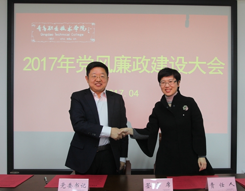会上,王金生与班子成员和各二级学院党总支书记现场签订了党风廉政建设责任制状。