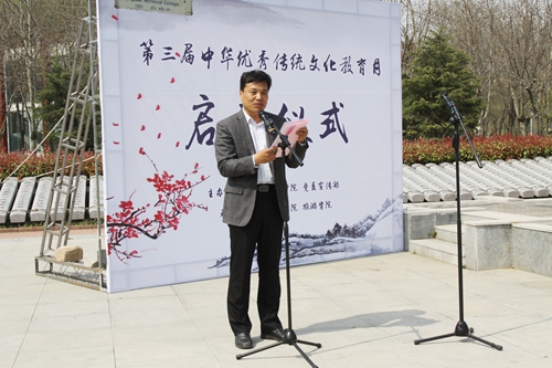 4月13日,学院第三届“中华优秀传统文化教育月”启动仪式在孔子文化广场举行。活动以“学礼以立,以礼存心”为主题,旨在贯彻落实中央《关于实施中华优秀传统文化传承发展工程的意见》,弘扬中华优秀传统文化,推动学院师生对中华优秀传统文化及社会主义核心价值观的认知与传承,进一步打造青职校园文化品牌。学院领导王金生、覃川、刘甲珉、薛玉平、刘伟、孔宪思、邢广陆,上海开放大学中文系教授、百家讲坛主讲专家鲍鹏山,中国汉服博物馆馆长、青岛汉服协会会长王忠坤应邀出席活动。全体处科级干部、各二级学院教师代表和学生代表参加活动。启动仪式由党委副书记刘甲珉主持。