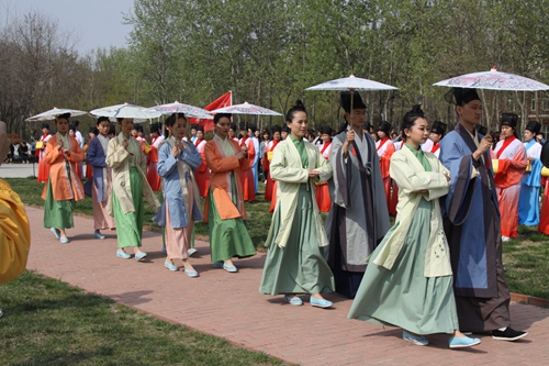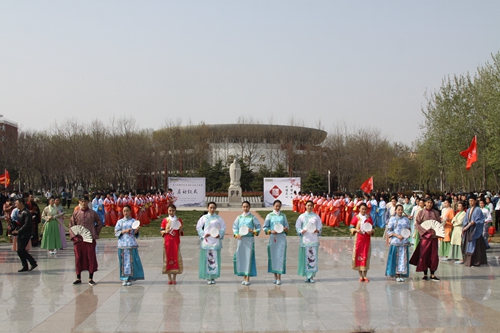 旅游学院珠山书院和淑女学苑社团学生身着汉服诵读《大学之礼》