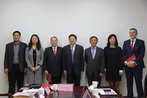4月19日,西班牙华人华侨协会会长李志俊先生携西班牙国际大学交流基金会主席Cayetano Nunez先生和葡萄牙里斯本自治大学法学院院长Pedro TrivaoRisrio博士一行3人在青岛市外办友协处处长鞠建军、青岛市教育局国际处衣冠调研员、青岛思诺国际教育刘蔚总经理等的陪同下访问我院。学院党委书记王金生、副院长邢广陆会见来访客人。国际处、宣传部、教务处相关负责人参加接待活动。
