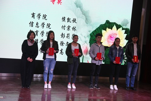 信息学院孙绍玲老师为国学知识竞赛获奖者颁奖