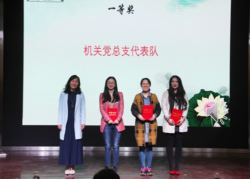 宣传部部长田秀丽为一等奖获奖代表队颁奖