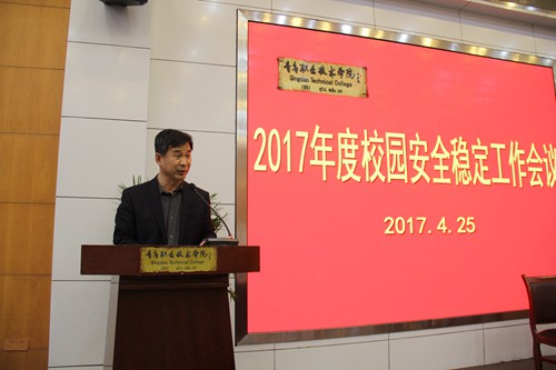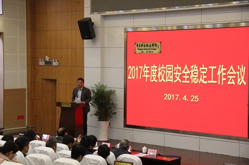 4月25日,学院在报告厅召开2017年度安全稳定工作会议。学院领导王金生、覃川、刘甲珉、薛玉平、孔宪思、邢广陆出席会议,会议由党委副书记刘甲珉主持。