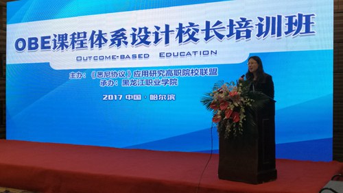 6月9日,由《悉尼协议》应用研究高职院校联盟和黑龙江职业学院共同主办成果导向教育(OBE)课程体系设计校长培训班在哈尔滨举行。来自全国70余所高职院校的200多名代表参加了会议。我院作为联盟副理事长单位,由副院长邢广陆带队参会,并且受主办单位黑龙江职业学院委托主持专题报告阶段的培训。