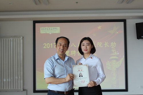 6月20日,学院在综合实训楼会议室举行第八届学生院长助理聘任仪式,院长覃川、党委副书记刘甲珉出席仪式。