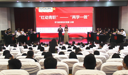 6月22日下午,学院在艺术厅举办“红动青职——两学一做”学习教育知识竞赛决赛。党委副书记刘甲珉、纪委书记刘伟出席活动,各二级学院党总支书记及职能部门负责人、党务工作者、师生党员及学生代表共400余人参加了活动。此次活动由学院“两学一做”学习教育领导小组办公室主办,生物与化工学院党总支承办。