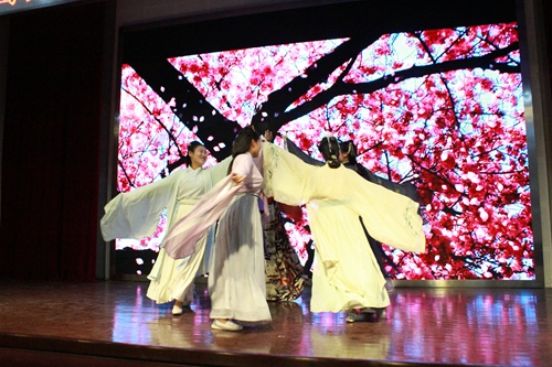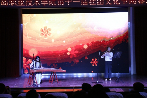 大学生艺术团表演的古筝、笛子二重奏《梅花泪》