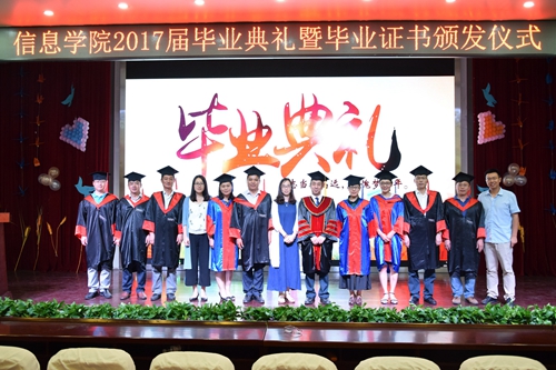 覃川院长与参加信息学院毕业典礼人员合影留念