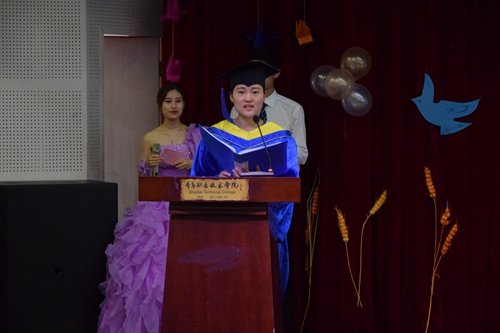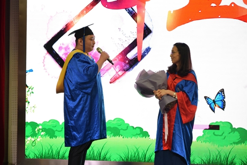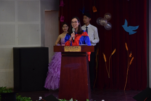 覃川在致辞中以“以德立身行天下”为主题,通过与同学们讨论 “为何要以德立身”和“如何以德立身”两个问题,寄语毕业生们“学习爱己爱人爱世界,学习做人做事行天下”,希望毕业生们在广阔天地中书写自己的精彩,创出人生的事业。院长的致辞让毕业生感慨良多,心潮澎湃,现场掌声不断。