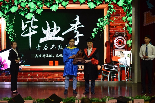 毕业典礼在一曲怀旧的《青春纪念册》中拉开帷幕,随后,一段校园回忆视频将同学们带到了过去,毕业生们重温校园生活,回味感悟那三年美好的时光。信息学院党总支副书记白杭宣读了“省级优秀毕业生名单”“院级优秀毕业生名单”及2017届毕业生校友工作联络员聘任决定,信息学院副院长薛红燕和千峰科技有限公司刘沛君为“校友联络员”代表颁发聘书,信息学院党总支书记孙显录和海信公司白东方为“院级优秀毕业生”代表颁发证书,刘甲珉和信息学院捐献造血干细胞的优秀毕业生代表王腾飞为“省级院级优秀毕业生”代表颁发证书。