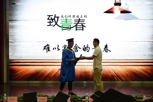 在随后进行的毕业证书颁发仪式上,常中华为毕业生拨穗,覃川亲自为信息学院2017届全体毕业生颁发了亲笔签名的毕业证书,刘甲珉为每位毕业生赠送了《毕业生纪念册》,送去了学院对每一个学生的爱,为他们的大学生活画上了圆满的句号。
