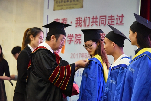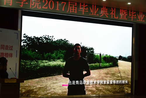 此次毕业典礼以“幸福+”为主题,由微电影《再见·再见》开始,带领同学重温了从入学到毕业那些学习、生活、工作中的经历,再次体味了同窗、师生、亲人间的幸福。随后,出席领导为技能英才、院级省级优秀毕业生获得者颁发证书。在热烈的气氛中,毕业生与学妹、宿舍管理员、辅导员、任课教师、家长共同讲述了彼此的青职故事,在故事中毕业生们表达了对家长养育之恩的感激,对老师传道授业解惑的感谢,对同窗陪伴的感怀,对母校承载青春的感念。老师、家长深情款款地道出了对学生毕业的不舍以及对大家未来爱的祝福。随后,一曲《一路顺风》将毕业典礼推向高潮,一幕幕共同的回忆浮现眼前,就像在昨天,师生难掩激动的心情,欢笑和泪水交织在一起。
