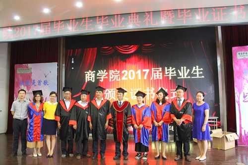 6月28日上午,商学院“相逢是首歌”2017届毕业生毕业典礼暨毕业证书颁发仪式在学院艺术厅举行。院长覃川、党委副书记刘甲珉出席典礼,宣传部、学生处负责人及企业嘉宾、家长代表、校友代表,商学院负责人、教师代表及700余名毕业生参加了毕业典礼。
