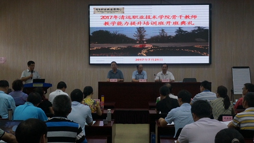 7月21日,广东清远职业技术学院骨干教师教学能力提升培训开班仪式在我院南校区举行。院长覃川、清远职院副院长陈景勇出席仪式,清远职院57名专业骨干教师参加仪式。仪式由培训学院党总支书记田俊涛主持。