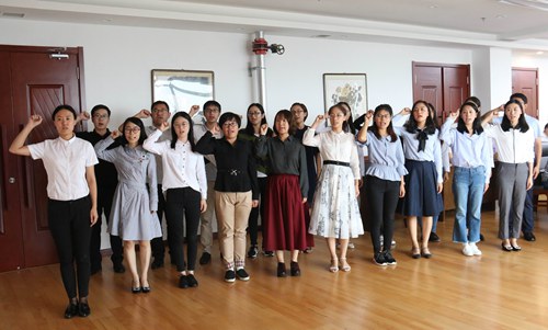 在庄严的入职宣誓仪式后,20位新教师逐一进行了简短的自我介绍并发表入职感言。2016年入职教师代表何利娟介绍入职经验,2017年新教师代表肖彤作表态发言。旅游学院院长李成和学工部部长张旭鹏分别代表二级部门发言。