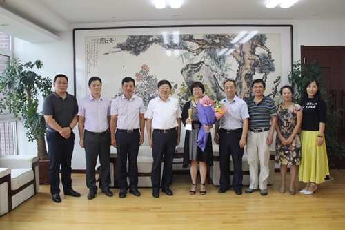 9月7日上午,学院党委书记王金生、院长覃川、党委副书记刘甲珉共同会见了刚参加完省委宣传部、省教育厅组织的颁奖活动后返校的“2017齐鲁最美教师”张薇教授。宣传部、工会、人事处、旅游学院等部门负责人参加会见。
